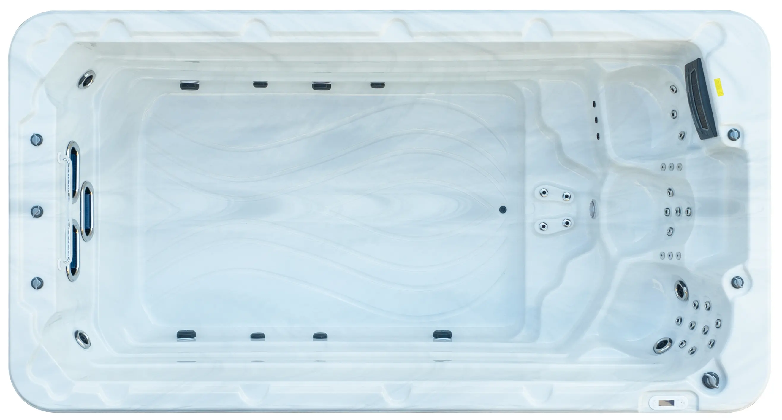 Хорошо продуманная система освещения превращает вечерний отдых в эстетическое наслаждение. Многоцветная подводная подсветка Northern Lights, дополненная изящной подсветкой ватерлинии, создает сложную игру света на воде, способствующую глубокой релаксации и визуальной гармонии.